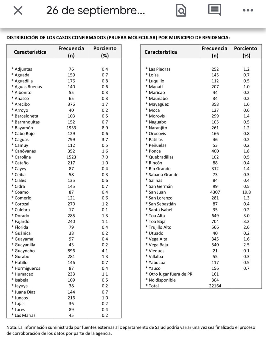 1.) 284 casos confirmados de #COVID19 registrados hoy por el @DeptSaludPR. Muestras del 9 al 23 de septiembre (+19 casos previos, -7 casos duplicados).