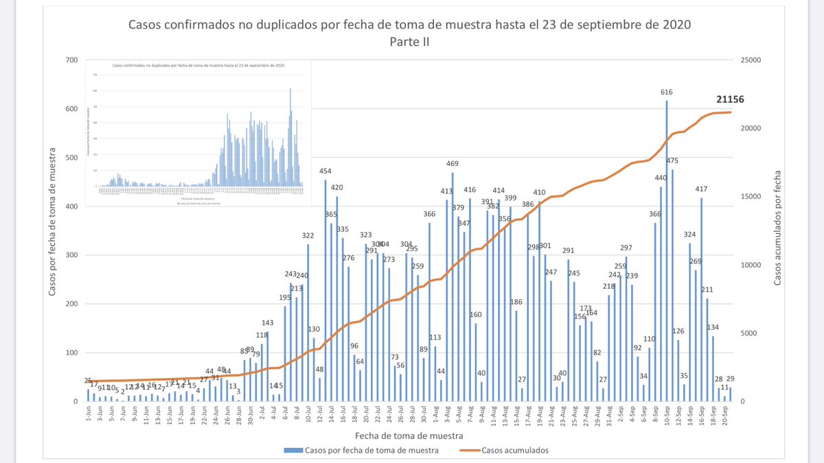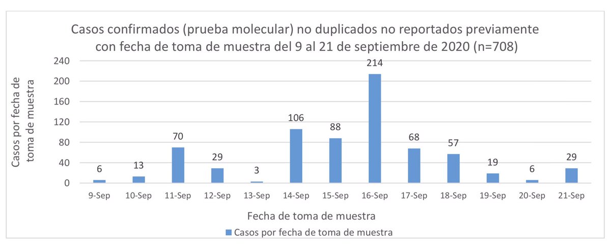 1.) 708 casos confirmados de #COVID19 registrados hoy por el @DeptSaludPR. Muestras del 9 al 21 de septiembre (+20 casos previos, -11 casos duplicados).