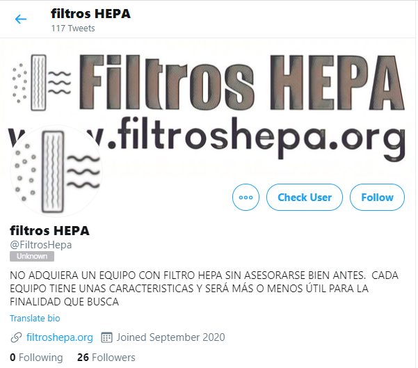 @FiltrosHEPA, por favor identifiquese, incluyendo su currículum vitae, y sus cualificaciones para opinar sobre este tema como experto (como sugiere el nombre de su cuenta y su página web)