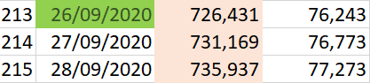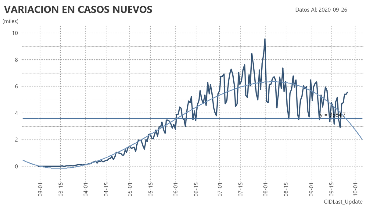 El porcentaje de aumento de casos contra el día anterior fue del 0.77%. Se llegará a 800 mil casos el 14 de Octubre.