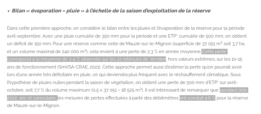 → en pratique, on observe plutôt entre 3 et 4% pour les réserves voisines de Vendée, et pour 2022 qui préfigure l'avenir du réchauffement climatique, on atteint tout juste 6%