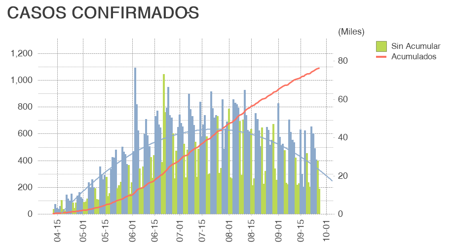 El estado de los casos acumulados y casos nuevos a nivel global es el siguiente. Hoy somos el país número 28 con más casos nuevos en el mundo.