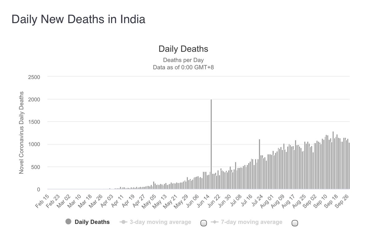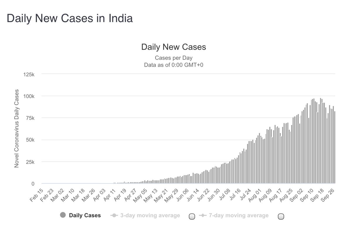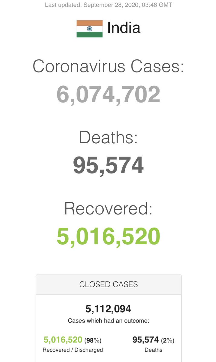 #India recorded 82,767 new #COVID19 infection cases yesterday while losing another 1,040 lives to the #coronavirus. Yesterday total to date infections in India passed 6,000,000. This week total to date virus deaths in the country will pass 100,000.