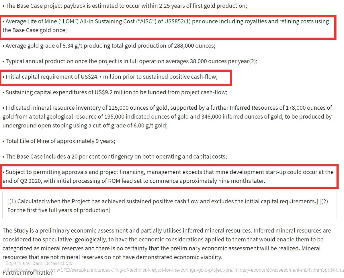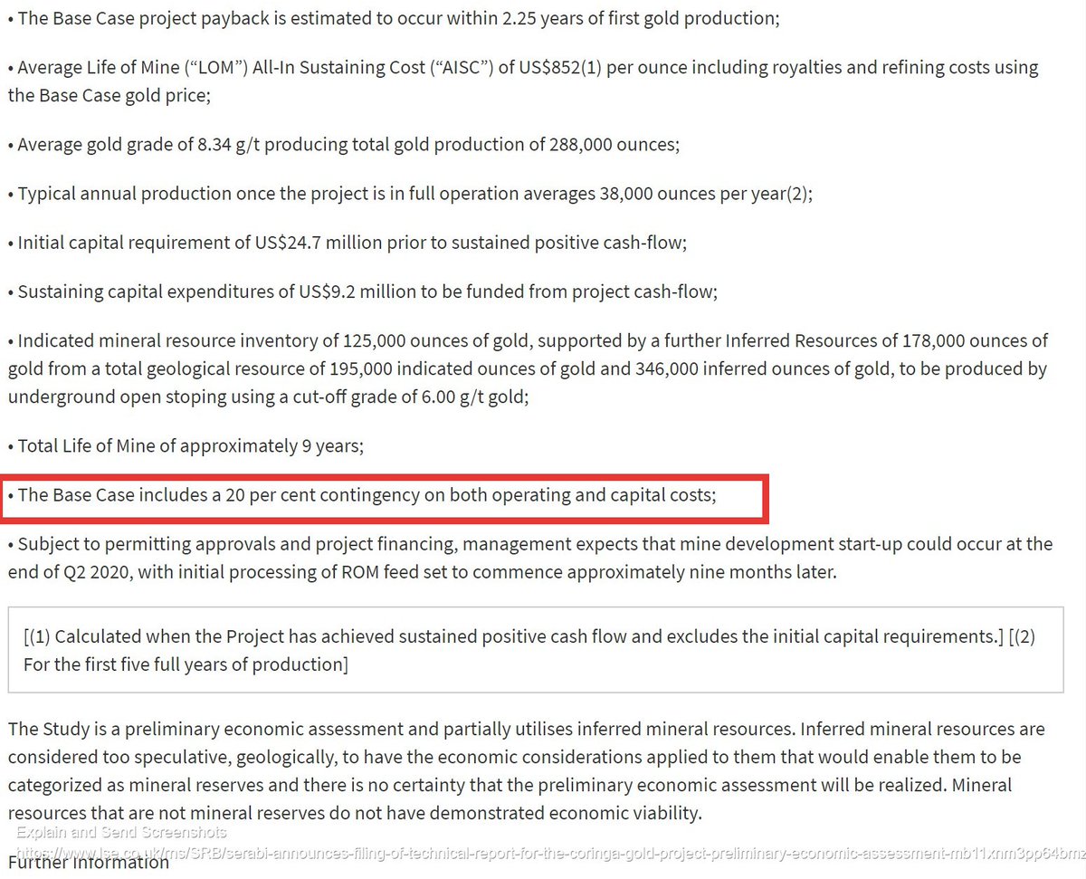 However, SRB are clear that they have already built a similar mine at Palito, so the "20 per cent contingency on both operating and capital costs" in the Oct PEA, is not to be sniffed at or easily dismissed.