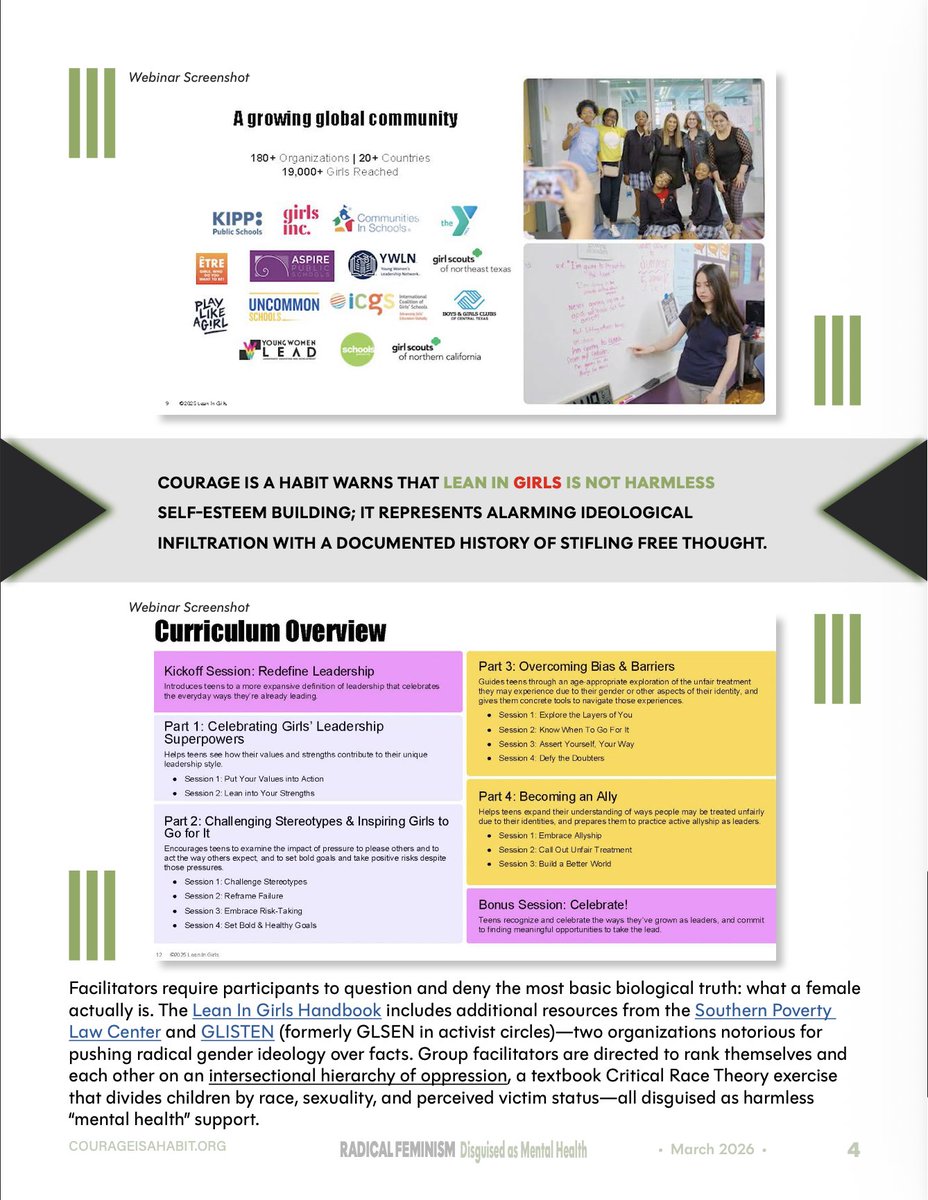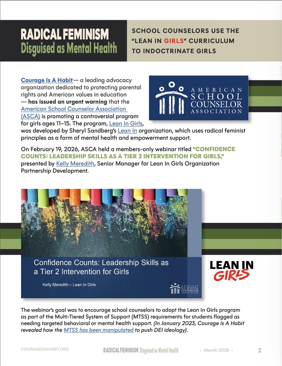 ASCA hosted a webinar promoting the Lean In Girls' Facilitator Handbook. Courage Is a Habit highlighted how that handbook promotes transgender ideology and CRT.