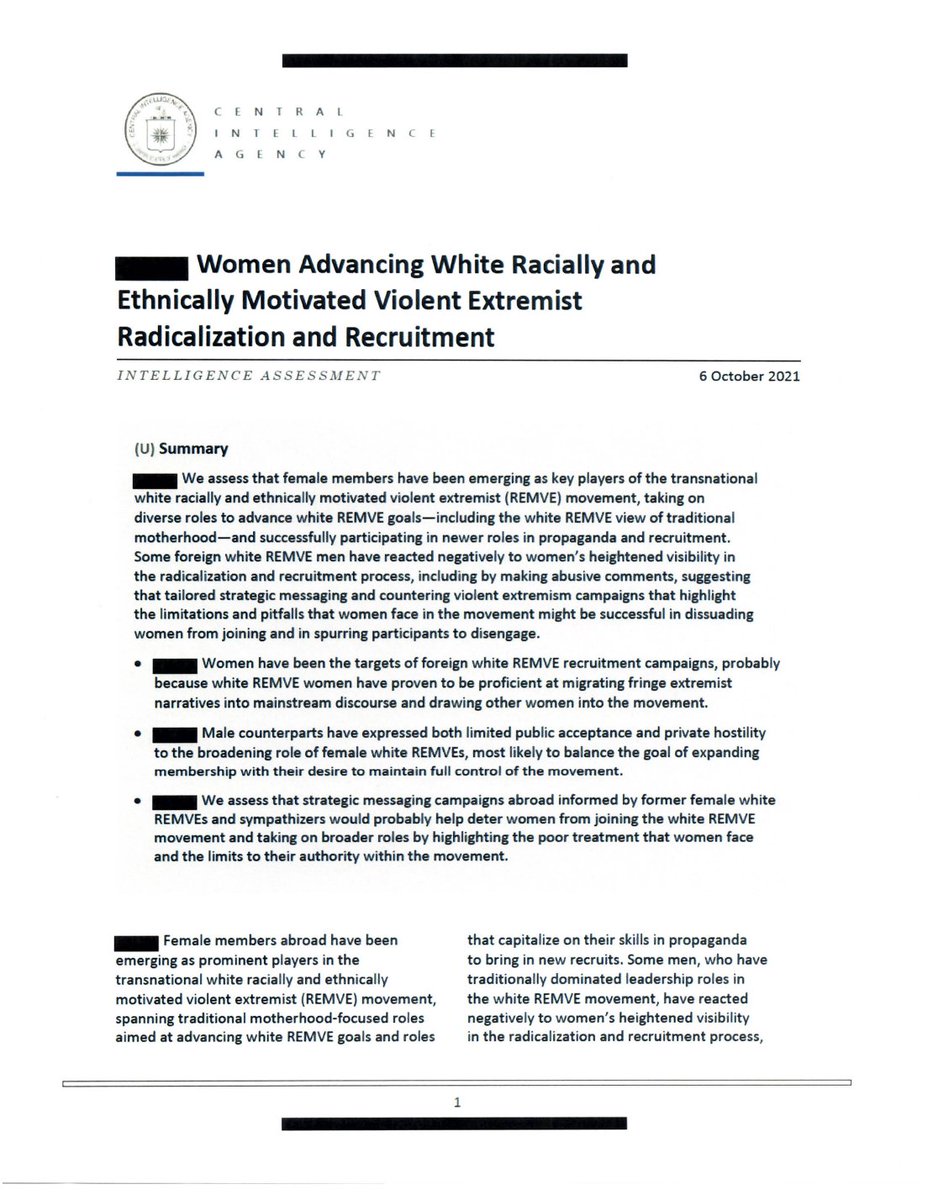 The CIA noted that one extremist group "has lauded motherhood and homemaking as women's most important responsibility."