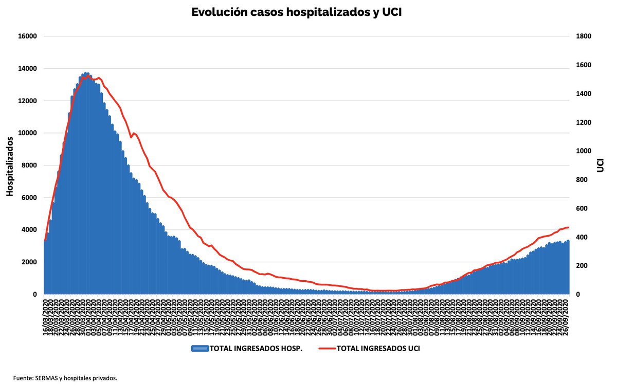 ¿Confundido con los ingresos en Madrid? Esta es la evolución del número de personas ingresadas según la CAM. Fuente: comunidad.madrid/servicios/salu…