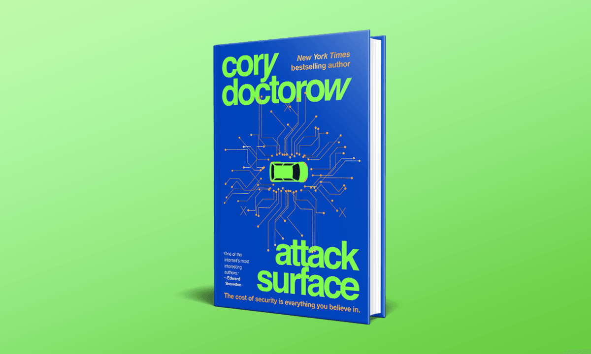 My next book is ATTACK SURFACE, sequel to Little Brother and Homeland: it's a technothriller about a surveillance techie who goes home and learns the weapons she helped build are used against the racial justice movement founded by her best friend.