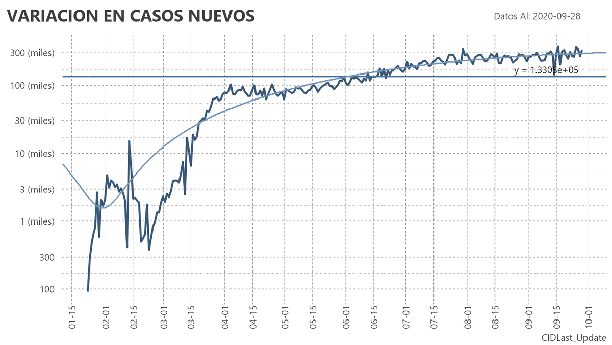 El porcentaje de aumento de casos contra el día anterior fue del 0.46%. Se llegará a 800 mil casos el 14 de Octubre.