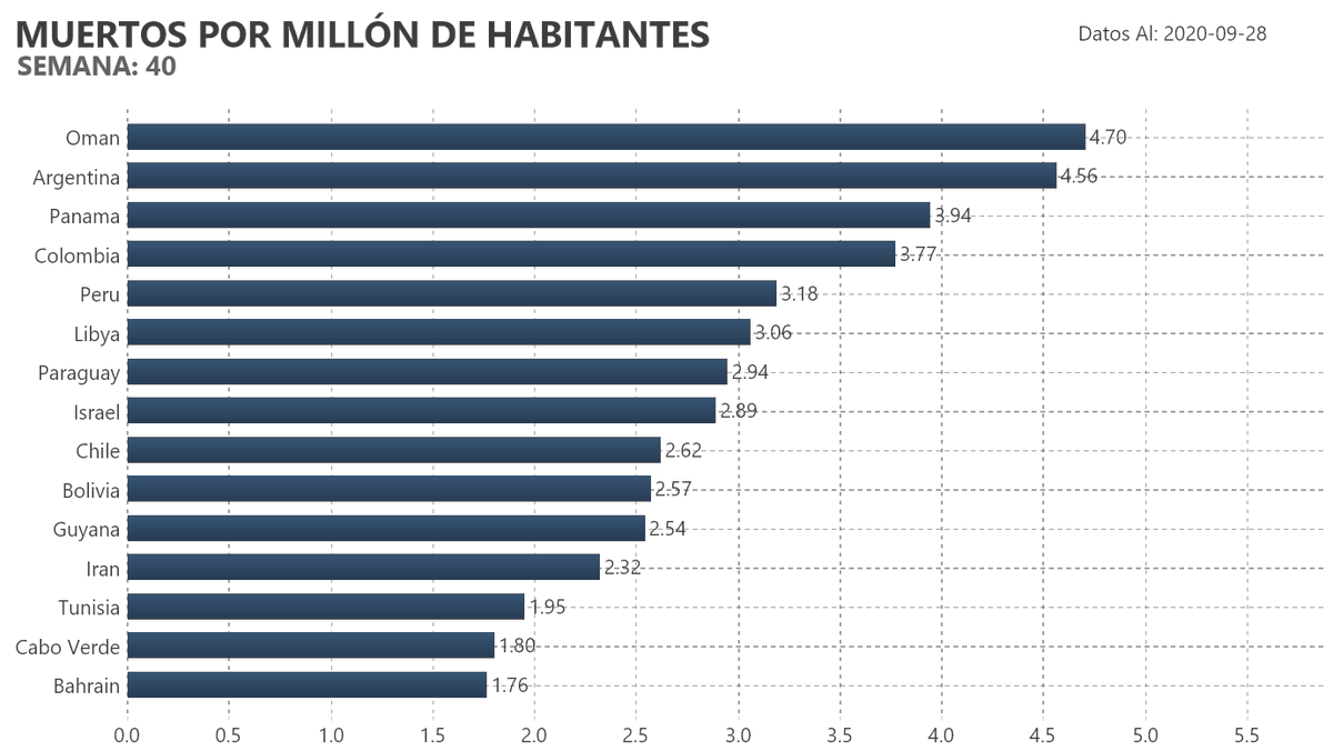 El estado de los decesos a nivel global es el siguiente. Hoy somos el país número 5 con más decesos totales, y el 6 en decesos nuevos en el mundo con 265.