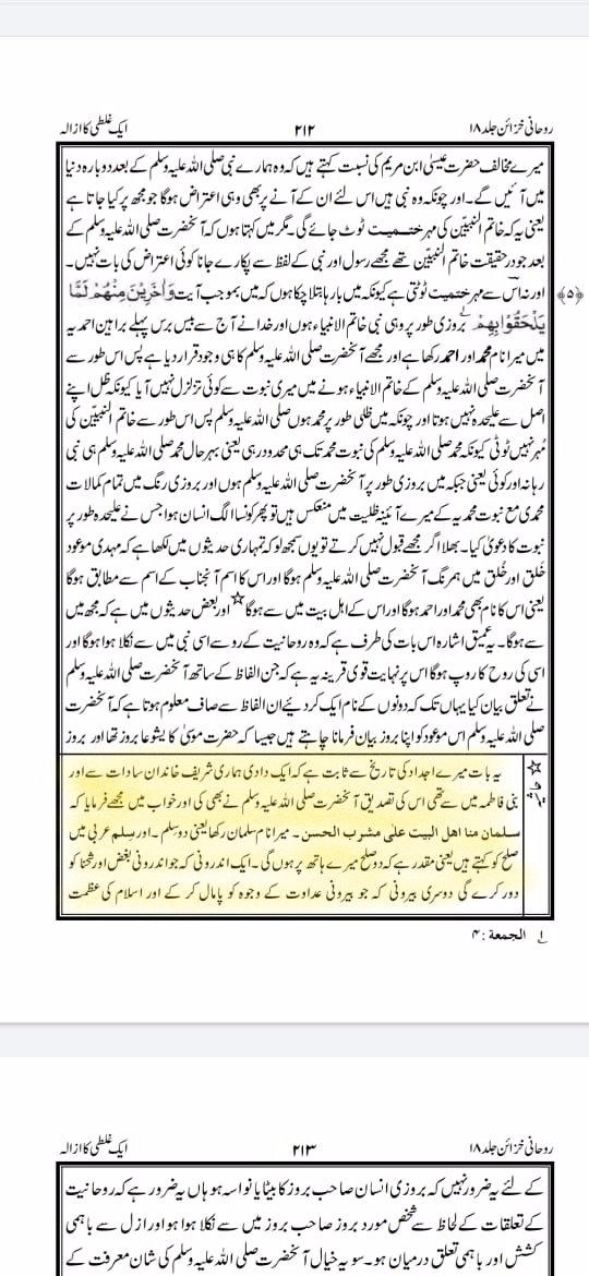 ہوگا،ان کے والد کا نام عبداللہ ہوگا،وہ سادات میں سے ہوں گے جبکہ آپ کے اندر تو اس بارے میں کوئی نشانی نہیں پائی جاتی۔تو مرزا صاحب نے جو جواب دیا وہ پڑھیں۔