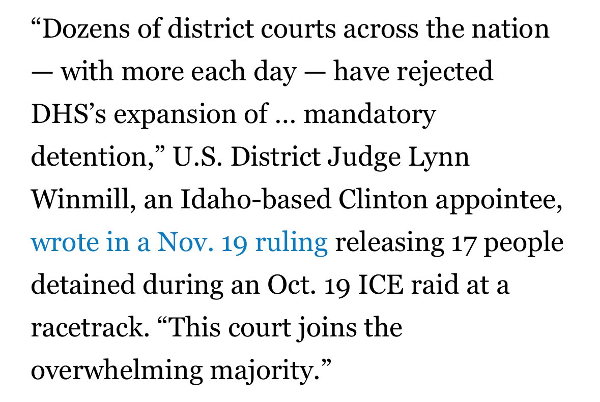 The cases have surged as ICE reclassified millions who have resided in the United States for years as “arriving aliens” or “applicants for admission” — making them subject to mandatory detention typically meant for those who just crossed the border. politico.com/news/2025/11/2…