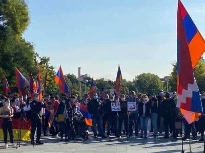 The rally was organized by the Central Council of German-Armenians and the German Diocese of the Armenian Holy Apostolic Church. A letter presenting the situation in Nagorno-Karabakh and following demands to the German government was submitted to German Chancellor Angela Merkel.