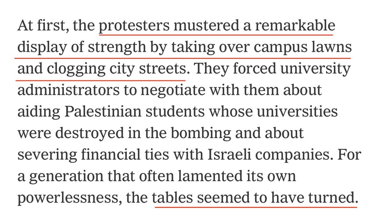 2/ LEFT: @nytimes calls taking over campuses and streets a “remarkable display of strength.”