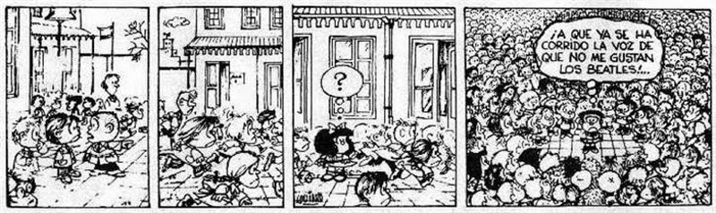 La tira de Quino empezó a publicarse en 1964 y aunque es contemporánea a la beatlemanía, Mafalda es bastante pionera en la Argentina a la hora de sentenciar que ese fenómeno es algo más que una moda pasajera. Es la identidad de una generación.