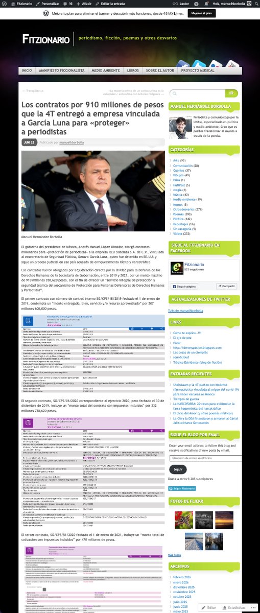 El pasado lunes 23 de febrero de 2026, un tipo identificado como Agustin López, me contactó por mensaje directo vía Facebook, a nombre de la empresa RCU Sistemas S.A. de C.V. para solicitar que ELIMINE un reportaje que escribí en 2021 y publiqué en mi blog personal Fitzionario.