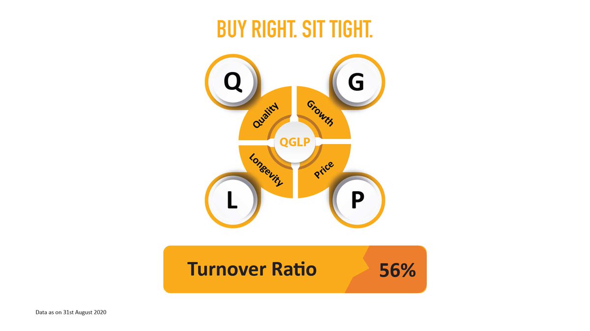 We use our unique QGLP stock-picking methodology to Buy Right, i.e. Quality in management & company, Growth in earnings & ROE, companies with a sustainable competitive advantage, and available at a reasonable price.
