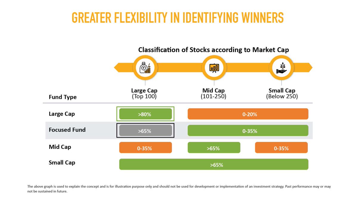 While Large-cap category funds have the restriction to invest a minimum of 80% in large-cap stocks that are top 100 stocks by market cap; in contrast, focused Large-cap funds like F25 have the flexibility as the min allocation to a seg that the fund intends to focus is 65%