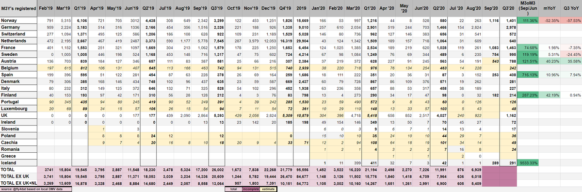 2/ It is likely that we are ending Q3 with 7 ships from Shanghai, carrying M3, MY RWD and all RHD MY (UK). 1 of them went to the UK, the rest to Continental Europe. This compares to 14 total in Q2, of which 5 went to the UK.