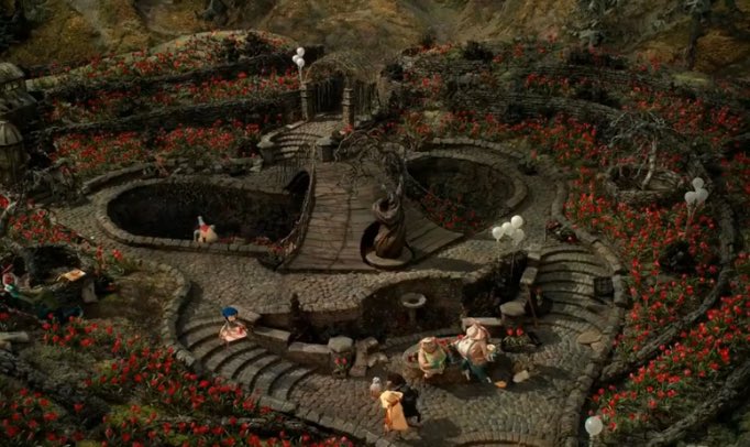 En esta escena, los arboles del fondo fueron hechos con Palomitas/pochoclos (como les digan) para dar un aspecto más “real” y “único”