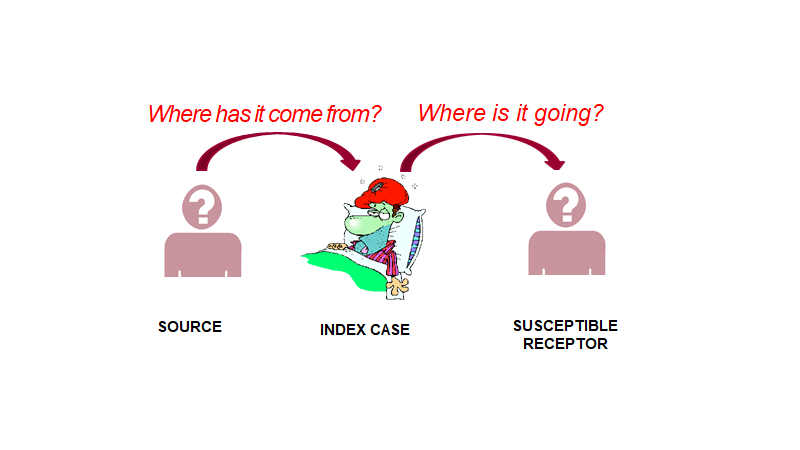 Contact tracing seeks out where the infection has come from (look for source) & where it is going (contacts of the index who may be susceptible). An assumption is that all infections are equal (i.e. every infected person has a similar chance of infecting someone else).