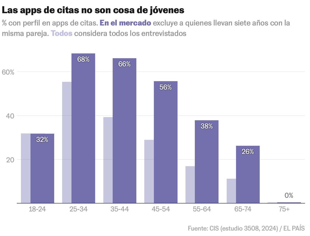 Si excluyes a quienes llevan años con pareja, la brecha generacional desaparece: las apps se usan igual con 30 o 40 años.