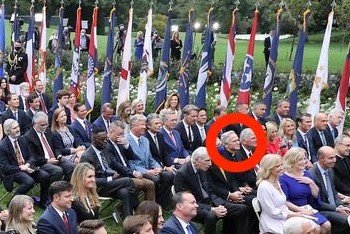 Franklin Graham is next to him to his right. Then Cissie Graham Lynch, then Paula White-Cain. None of Trump's court evangelicals are wearing masks. But I doubt many talked with Dr. Father John Jenkins because they wouldn't know what to say. (Senator Ben Sasse has a mask on).