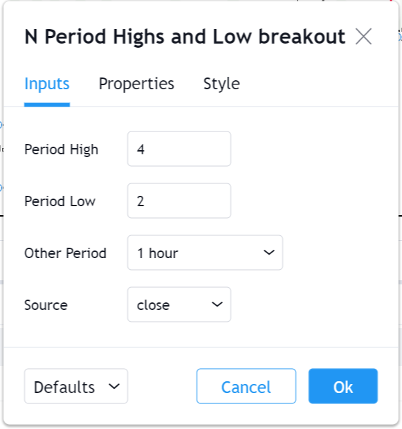 - You can also backtest this strategy for any N period high low break. Usually, you will find traders using Day/Week high and low breaks. But, I've made this strategy generic to even test a 1/2/3/4 hour high/low breakout. 2/n