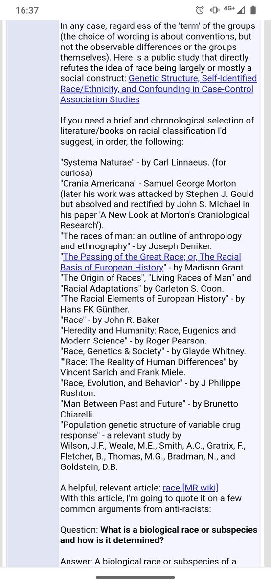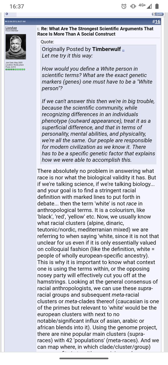 Det är här Hans står. Och han hånar de vulgära nazisterna som fortfarande förfäktar plumpa utdaterade 30-talsteorier o konspirationer. Han förespråkar rasmedvetenhet o rasåtskillnad utan rasöverhöghet.