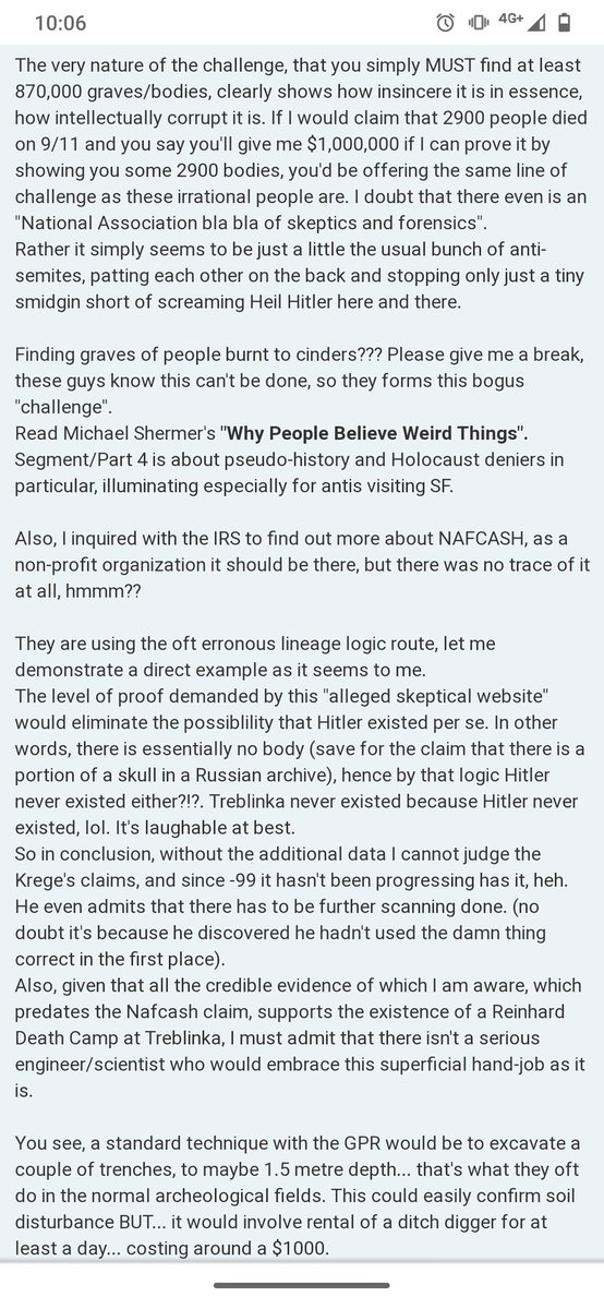 På andra forum och platser sågar han Förintelseförnekarna vid fotknölarna. De sabbar en "seriös" kritik av den judiska makten.