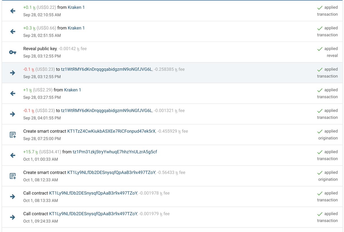 l'histoire commence le 28/09 quand le compte est reçoit des tezos de kraken. Je passe les détails (quelques tests pour être sûr que le propriétaire a bien la bonne clef privée).