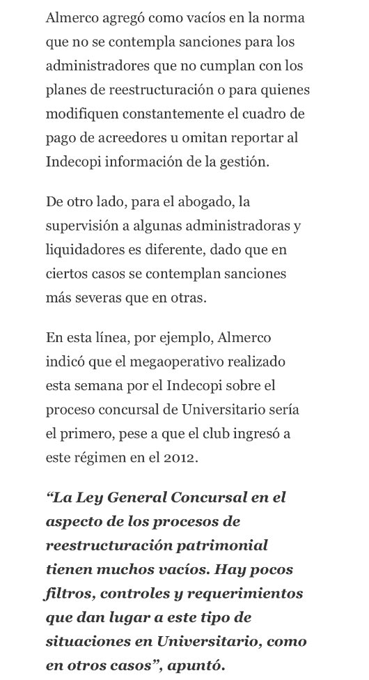 Porque la ley general concursal tiene vacíos y el Indecopi, en ciertos casos, tiene facultades limitadas. ¿Otro ejemplo? La demora en traspasos de gestión (demoran meses).