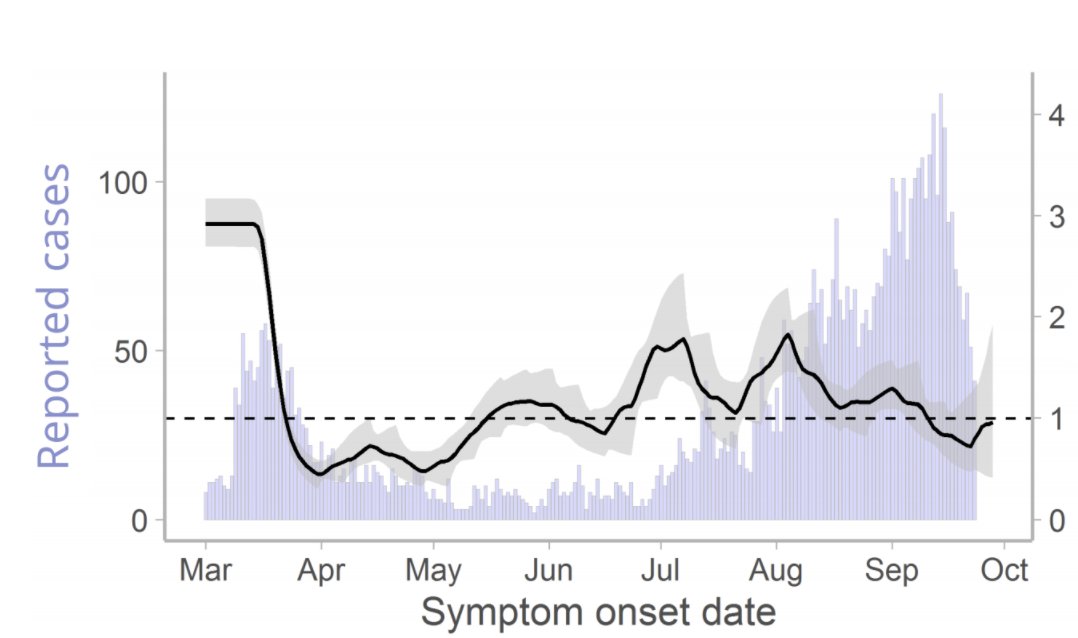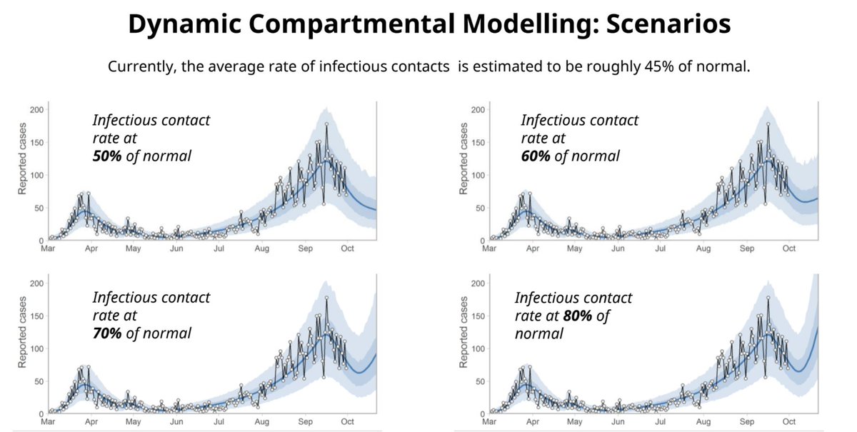 New #COVID19 modelling from the government shows that B.C.'s r-rate has gone below 1 (which is good!) and that the virus can be held in check if we keep contacts under 60% (which has been the case since May)