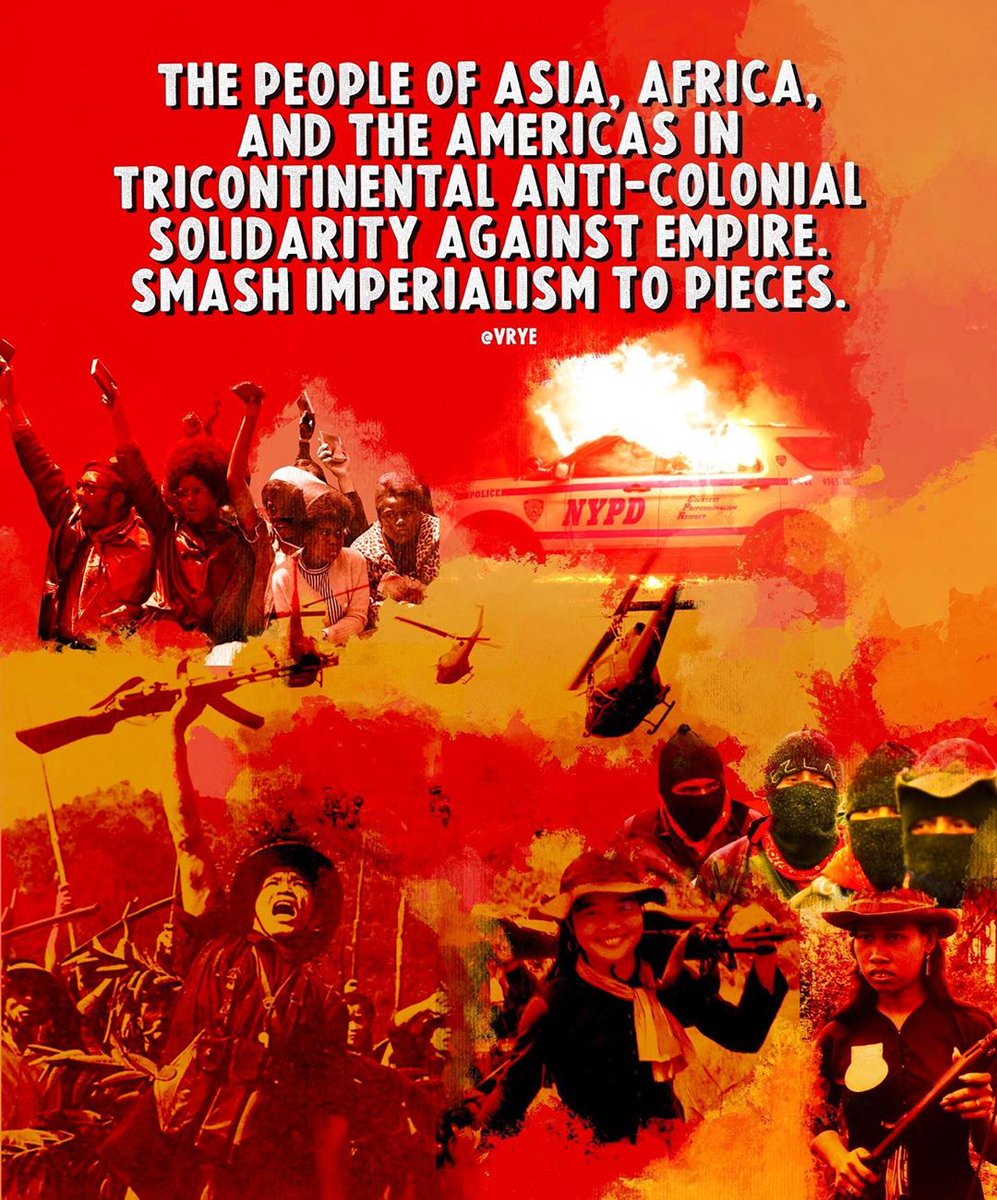 Qiao Collective is honored to collaborate with artist Vienna Rye to post their art piece highlighting the tricontinental fight for communism. From China, Asia, Latin America to Africa—the fight for communism against imperialism continues today.