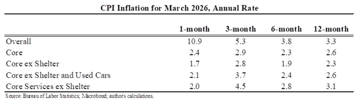 New NYT: CPI was super hot. But core was relatively tame. Two huge one-time factors raising inflation: tariffs & Iran. Fed can't solve them because they're not about excessive demand. Only Trump or time can solve.