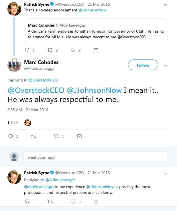 3) In 2016, Cohodes, who nowadays likes to project a "progressive" image, endorsed the far-right $OSTK Chairman J. Johnson for Utah governor. This was shortly after a scathing Daily Beast story that prompted an attack on the Beast writer in Deep Capture.web.archive.org/web/2016050108…