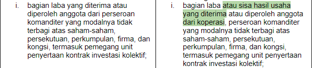 Ini konsisten dengan perubahan pasal sebelumnya yaitu menghilangkan sisa hasil usaha koperasi dari jenis objek pajak
