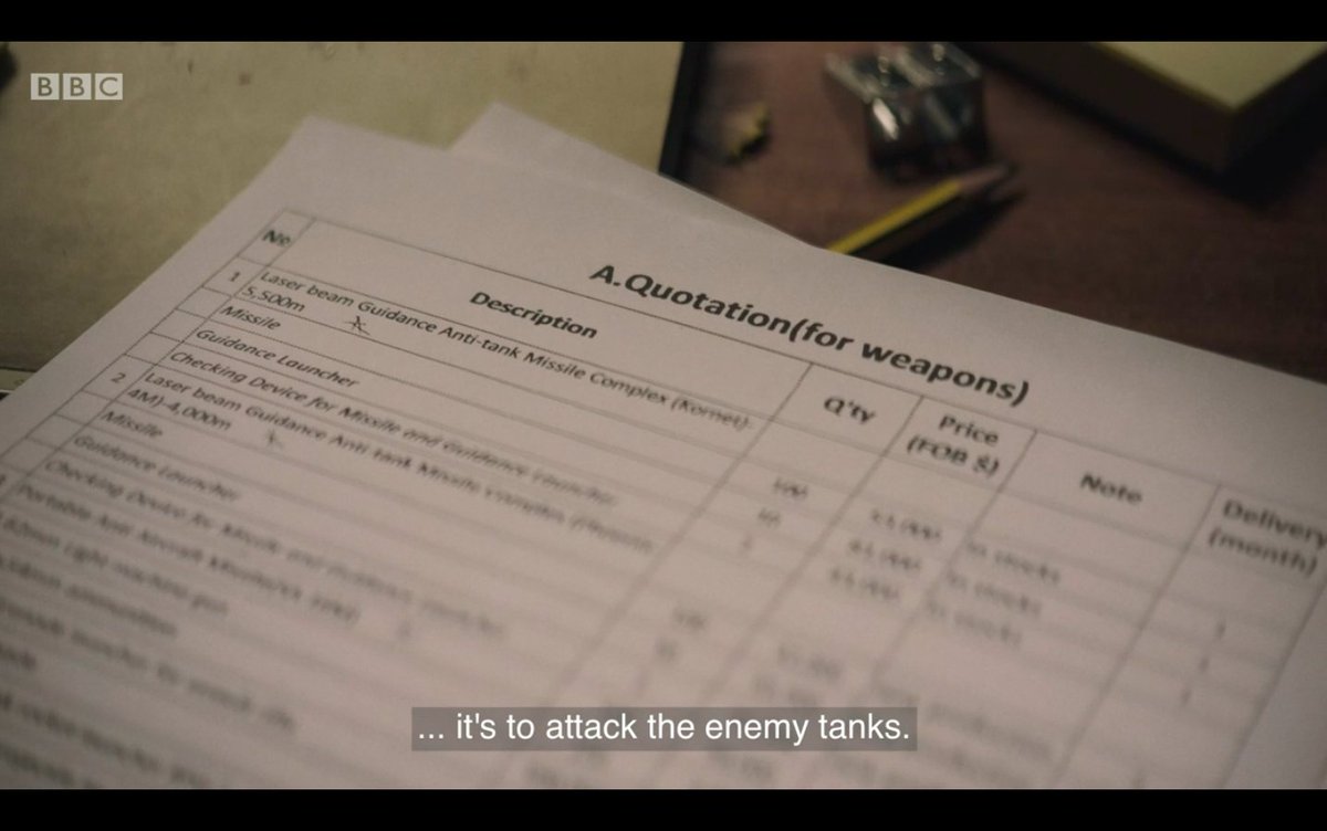 The mole sits down for lunch with President of a North Korean arms factory in a basement restaurant near Pyongyang - and is allegedly offered various types of weapons systems including ballistic missiles - 5 SCUDs for $14mil