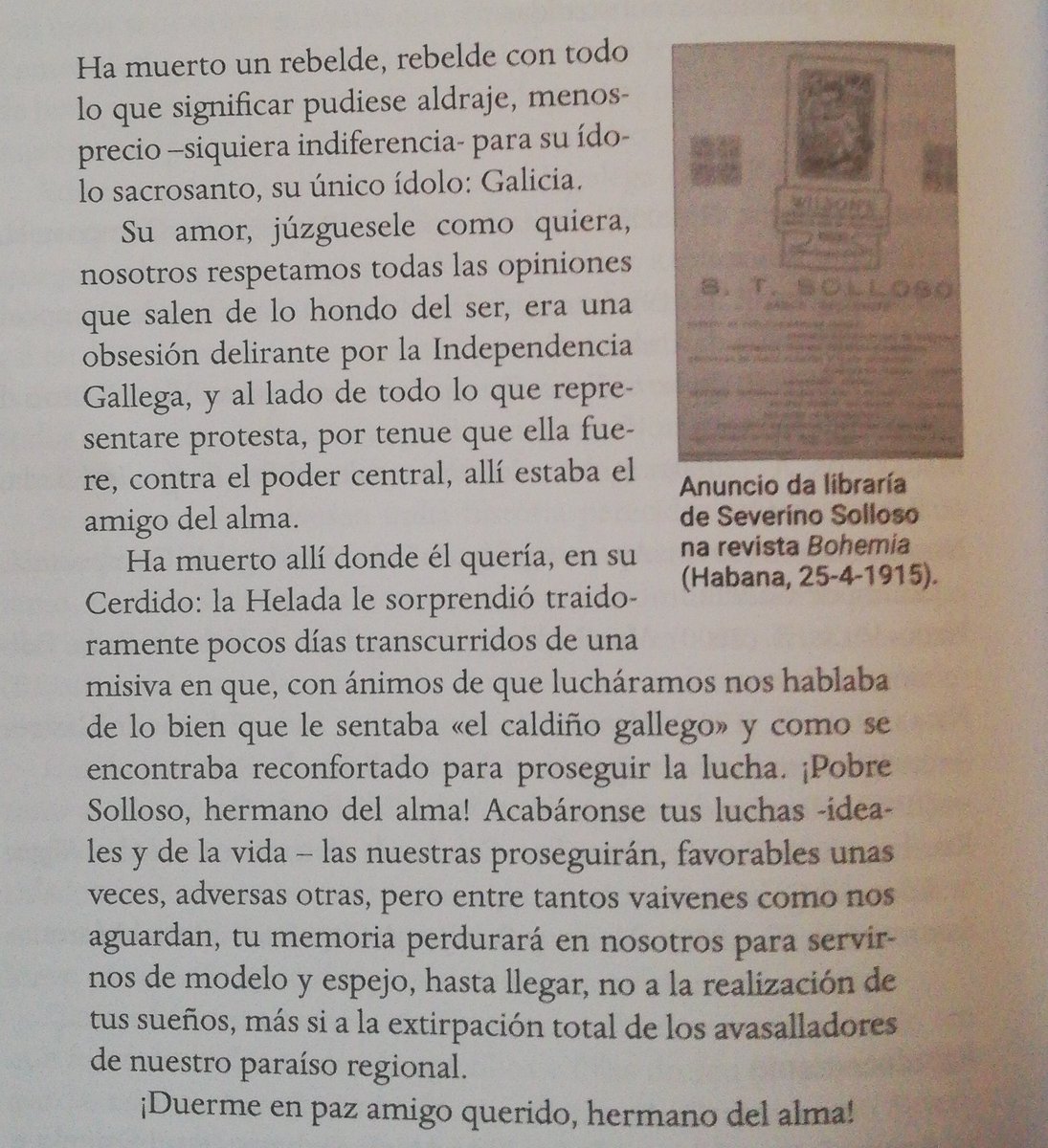 Chegou a ser tanto o seu prestixio como libreiro que o propio Miguel de Unamuno enviou en 1906 unha carta a un intelectual cubano na que se lee o seguinte.