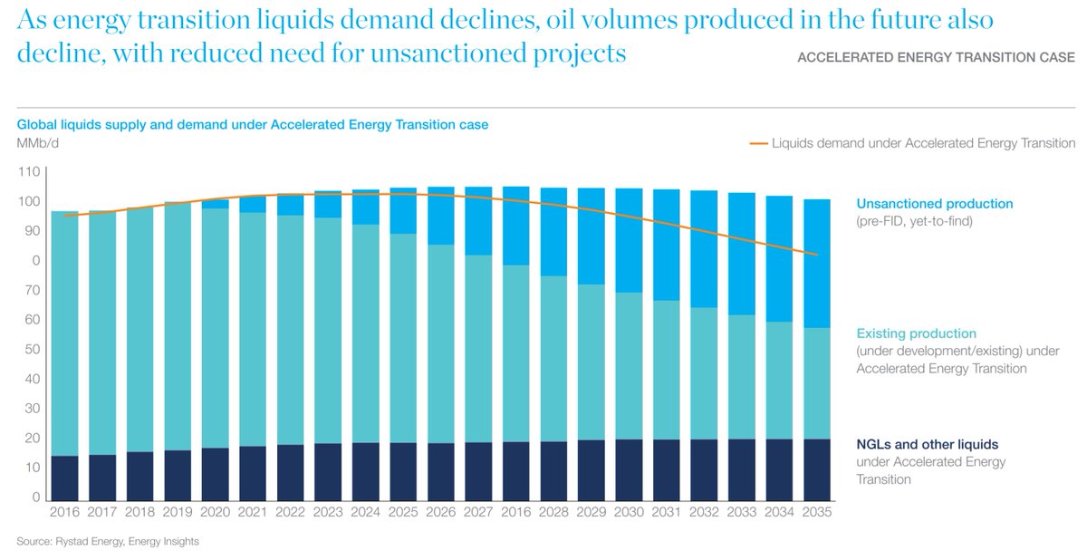4/This dynamic is important as we enter the energy transition and oil begins to decline. Often cited by the oil industry are charts like this, from McKinsey, show that even in transition scenarios, new investment is still needed to offset decline. mckinsey.com/solutions/ener…