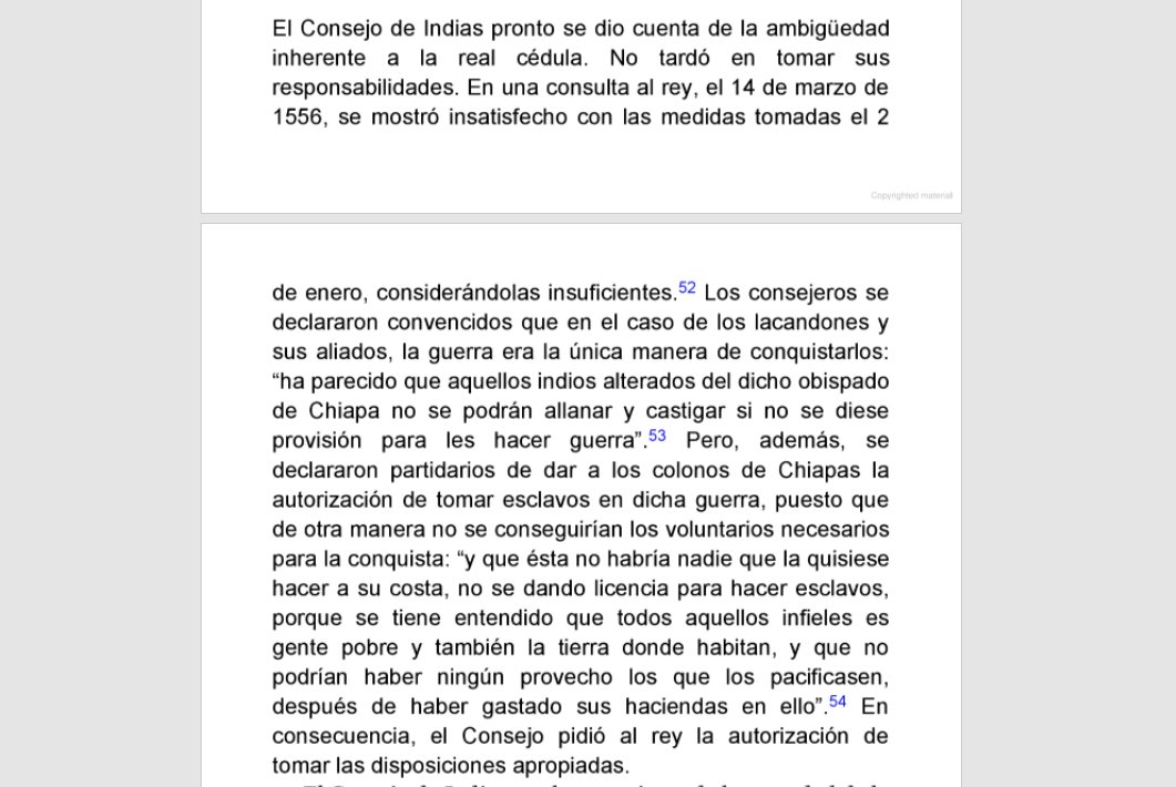Ya le referí antes pero uno de los casos que deja ver que la esclavitud india no se detuvo ni con las Leyes de 1542 y se extendió durante toda la colonia fue el exterminio de los Lacandones, proceso documentado por Jan de Vos