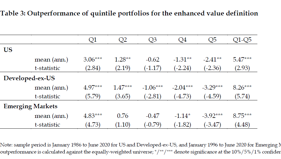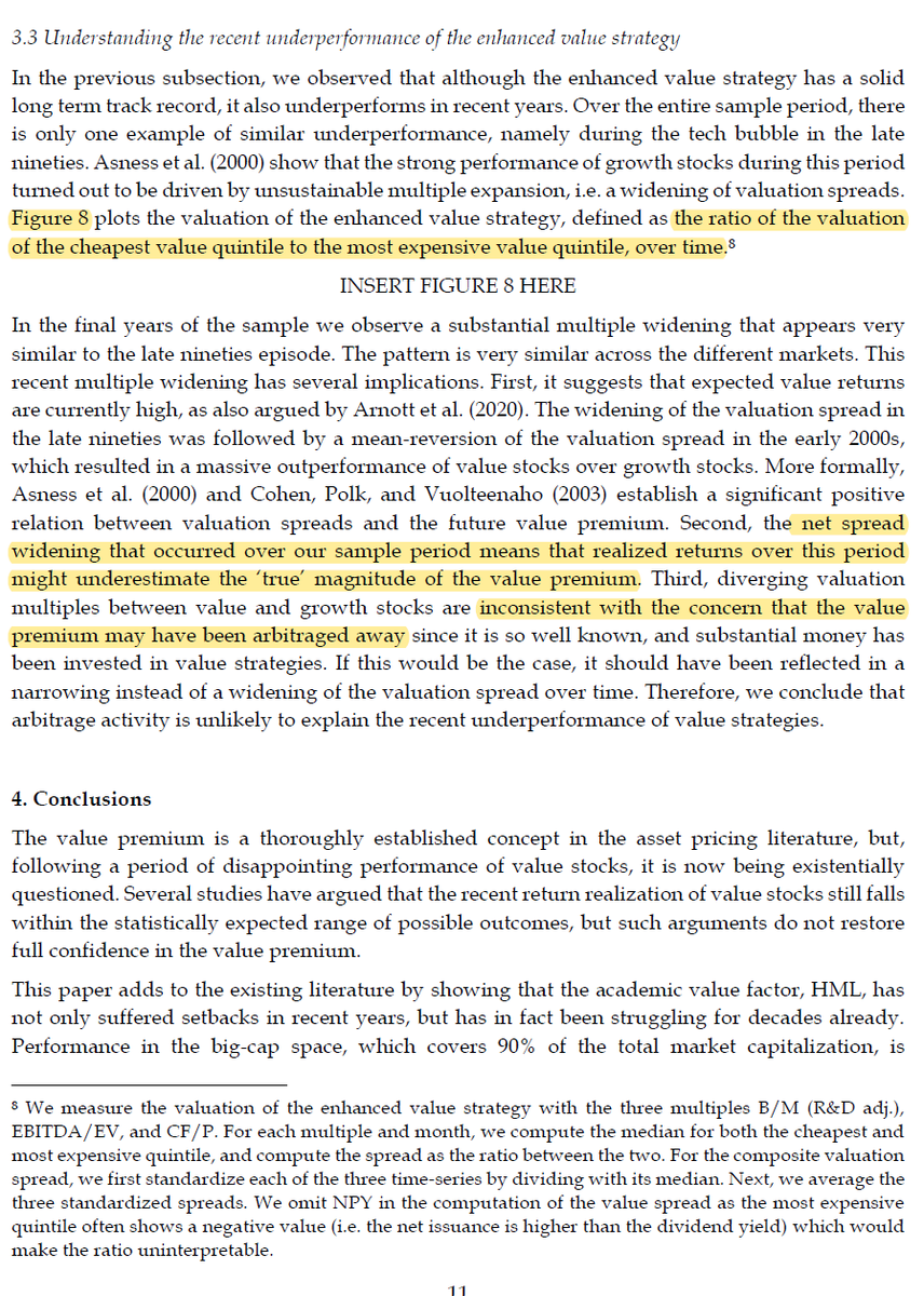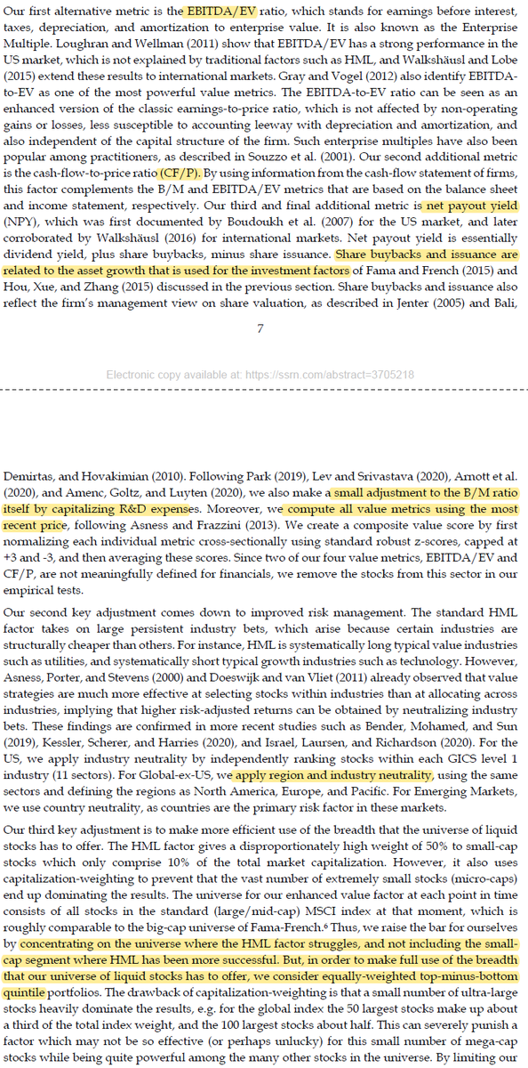 7/ "Whereas existential concerns are understandable for HML, they do not appear justified for the enhanced value strategy. In other words, if we move beyond the generic academic definition of value, a solid premium is still clearly present in the cross-section of stock returns."