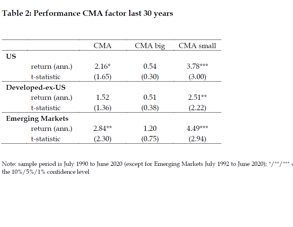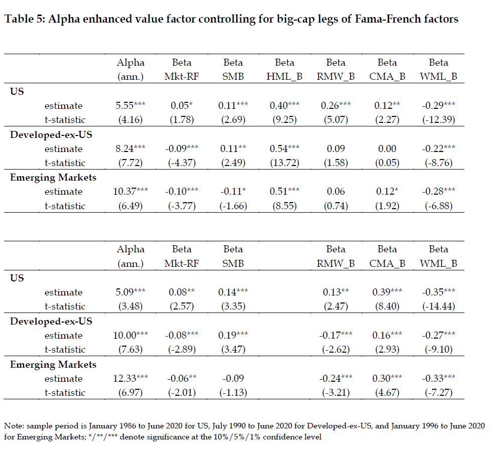 9/ "Findings are robust to using the big-cap versions of the Fama-French factors.