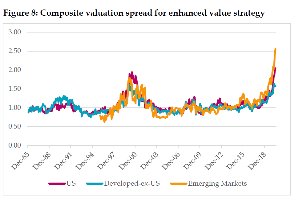 "Alpha increases (from lower premia on factors to which the enhanced value strategy is positively exposed) are largely offset by alpha decreases (from a lower premium on the momentum factor)."