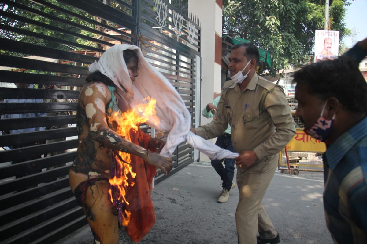 #UP BJP सरकार के द्वार पर यह तस्वीरें सिर्फ एक महिला के जलने की नहीं है,यह गुंडों द्वारा चलाई जा रही सरकार का जंगल-राज बयान कर रही हैं,