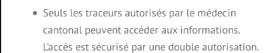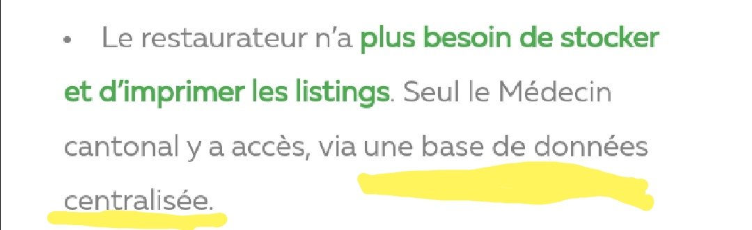They declare only Cantonal doctors can access data (not clear which data) but not under which conditions. Double authorization, cool. Who authorizes what? Is there any oversight or participation from the establishments? Can lists be decrypted without their involvement? Who can?