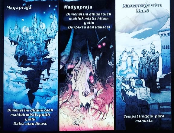 — Mayapraja, adalah dimensi para Deiva/Dewa. Sesuai ilustrasinya, negeri ini seperti kota di atas Awan.