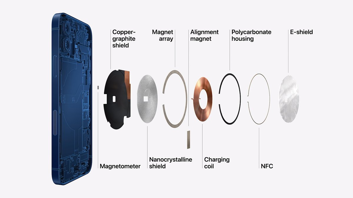 Apple is adding a magnet to the back of the iPhone 12 to make it line up better with wireless chargers, for more efficient charging. #AppleEvent
