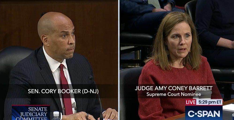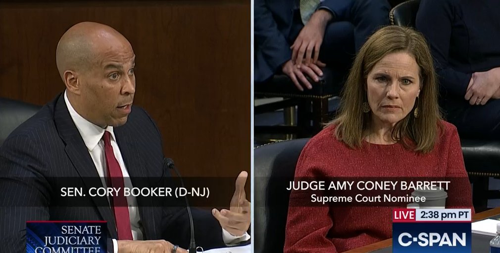 Booker is trying to play a skip-a-step thing on racial disparities where he's asking Barrett if she's heard of a study and thus agrees that the study's findings are true, or if she denies that such a study exists.