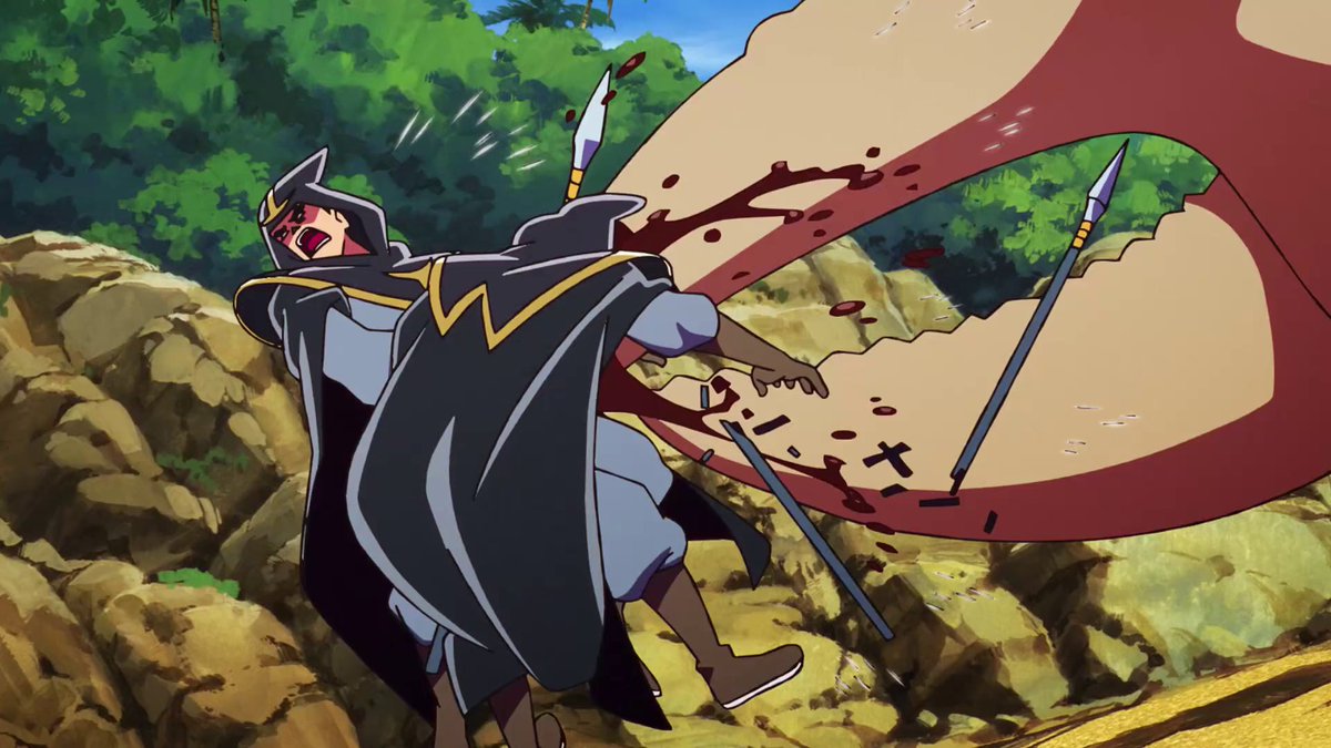De nuevo suavizan las expresiones humorísticas y vemos como el estado en el que acaba Varon tras ser derrotado es menos deplorable en el anime. ImageImage